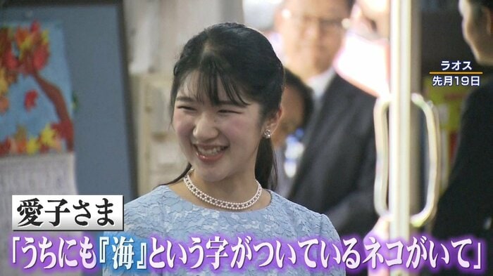 11月19日、訪問先のラオスで日本語での授業を行う学校を視察された際には、生徒のひとりが「私は海という漢字が一番好きです」と愛子さまに伝えると、「うちにも“海”という字がついているネコがいて…」と美海を紹介し、その場を和ませていました。