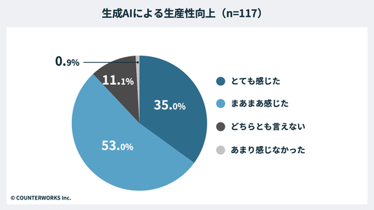 - 生産性向上の実感は88%。文章の作成・要約・構成整理など、情報を整える業務で効果が顕著。
