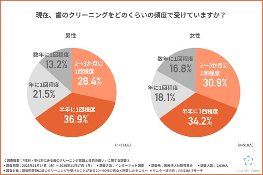 そこで今回、医療法人社団百星会(https://starwhitening.jp/)は、20~60代の男女を対象に、「性別・年代別にみる歯のクリーニング意識と目的の違い」に関する調査を行いました。
