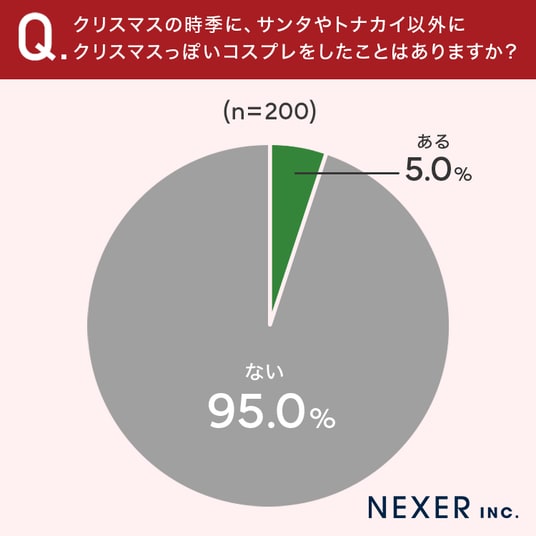 サンタやトナカイ以外のクリスマスっぽいコスプレの経験率はわずか5%でした。