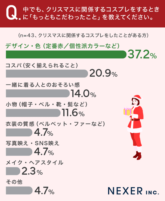 続いて、クリスマスに関係するコスプレをするときに「こだわったこと」は何かを聞いてみました。