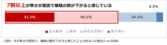 7割以上の人が、冬の寒さが原因で睡眠の質が下がると感じたことがある。