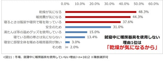 就寝中に暖房器具を使用していない理由の1位は「乾燥が気になるから」。