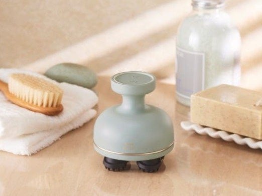頭皮や全身のケアに使える、EMS機能搭載のヘッドスパ。お風呂でも使えるIPX7(防水)仕様で、洗髪中に目を閉じたままでも簡単に操作できる、ボタン2つのシンプル設計です。