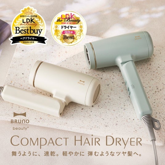 LDK the Beauty「コスメ・オブ・ザ・イヤー 2025」を受賞!全4,060点の美容関連アイテムの中からドライヤー部門で2025年第1位を獲得したヘアドライヤー。軽量でコンパクトな本体とパワフルな大風量で実現する速乾性が評価されました。
