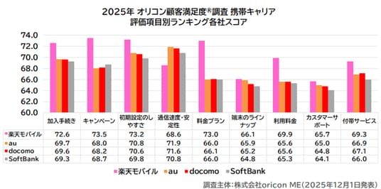 『携帯キャリア』評価項目別ランキング(2025年 オリコン顧客満足度(R)調査)