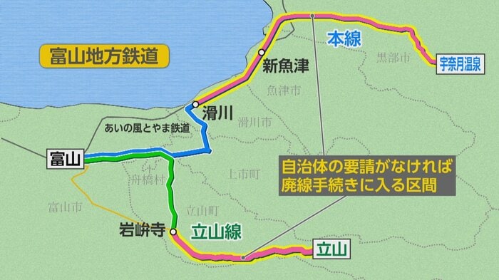 一方、今後、廃線の検討対象となるあいの風とやま鉄道と並行して走る滑川・新魚津駅間について、黒部市の武隈市長は沿線の滑川市と魚津市の判断を尊重する考えを示し、魚津市の村椿市長は慎重な考えを示しました。