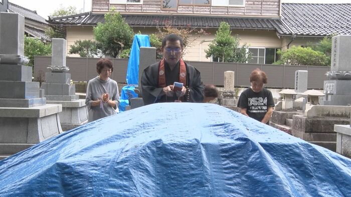 2025年9月、石川県志賀町赤住にある恩敬寺で開かれたのは遷仏法要。鐘の音がなると、門徒を始め寺にゆかりのある人たちが集まってきた。27世住職の池野観寿さん(52)が法要に向けて着替えていた。「最初に門徒から寄付していただいた袈裟です」住民たちが寺に集まると、にぎやかな声が響く。
