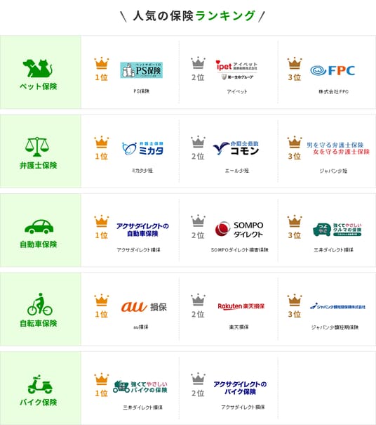 ペット保険: https://www.pets-station.info/弁護士保険: https://bengoshi-h.info/