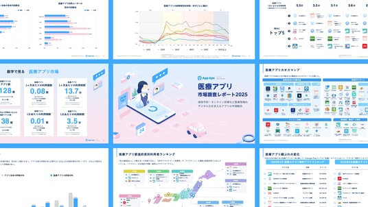 本レポートでは、市場概況に加え、性年代別構成、時間帯別の利用傾向、都道府県別の利用特徴、カオスマップ、評価分布、主なアプリ紹介など、多角的な観点から医療アプリの利用実態を可視化しました。