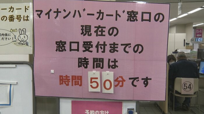 富山市役所の窓口では先月からマイナンバーカードの取得や更新の手続きで訪れる人が増えていて1日も常に30人前後が待っている状態が続いていました。