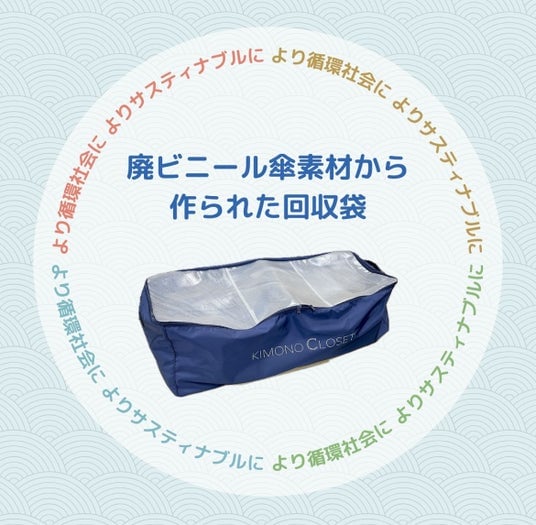 【新導入】廃ビニール傘を再利用した回収袋で、よりSDGsなサービスへ環境への配慮をさらに強化するため、PLASTICITY社の技術を採用した「着物回収袋」を新たに導入いたしました。 これまで使用していた使い捨て段ボールに代わり、廃棄されたビニール傘を再活用した素材を採用。着物を守る耐久性と、廃棄物削減を両立し、よりサステナブルな取り組みを推進してまいります。