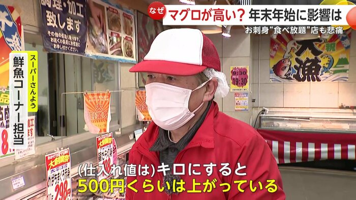 マグロの仕入れ価格上昇の影響は、都内のスーパーにも現れていた。