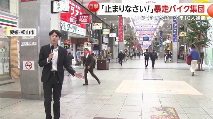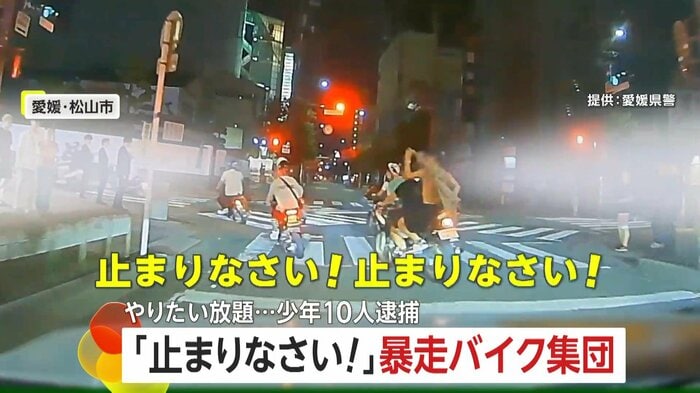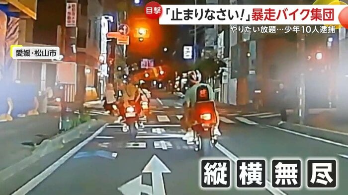 愛媛・松山市で目撃されたのは、深夜にけたたましいエンジン音を響かせるバイク集団。そこに警察車両のサイレンが鳴り響く。