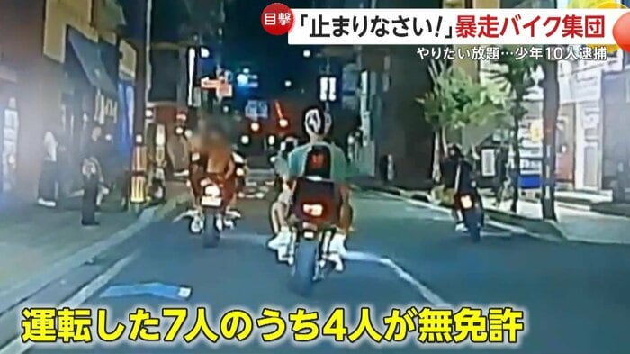 これらは6月に撮影された映像だが、警察は1日までに道路交通法違反の疑いで当時15~17歳だった少年10人を逮捕した。