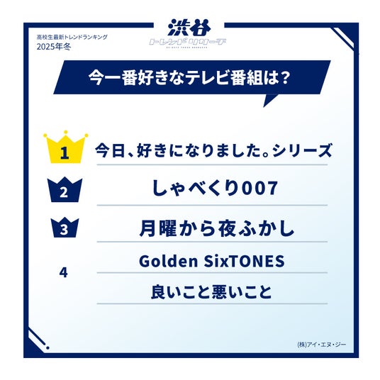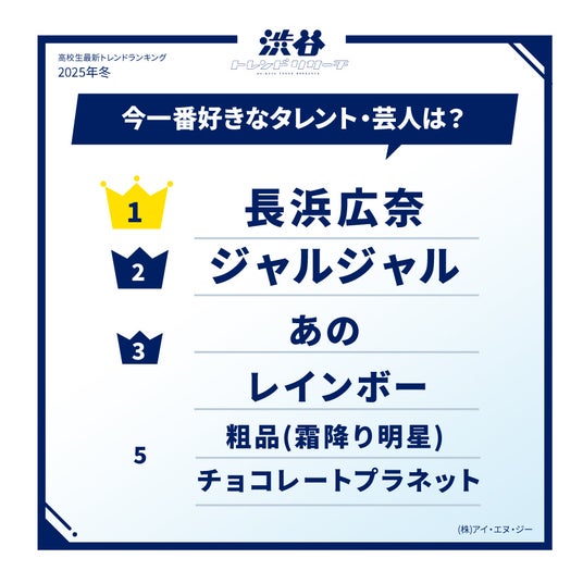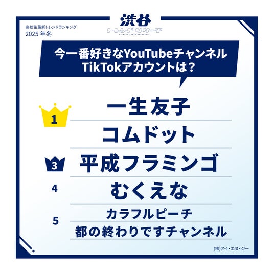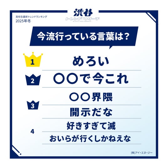 【2025年冬!高校生最新トレンドランキング】 Z世代の流行語や話題の食べ物・好きなアーティストなど全15項目を発表!ネクストトレンドでは入選コメントも掲載!渋谷トレンドリサーチ2025年冬の特大号
