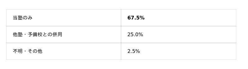 なお、「他塾・予備校との併用」と回答したケースには「近所の塾を、主に自習室として利用している」「併用先もオンラインの塾である」といった実態が含まれており、実質的にオンラインで学習を完結させているケースが多数を占めているといえます。