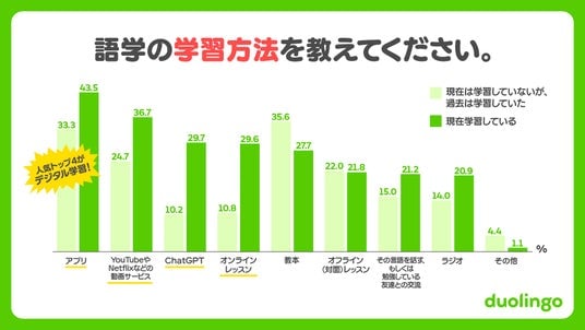 ・語学学習方法は依然アプリが人気!デジタルシフトが顕著に
