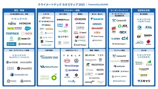 アスエネ株式会社(本社:東京都港区、Founder 代表取締役CEO:西和田 浩平、以下「当社」)は、国内外の脱炭素やESG、サステナビリティ市場の動向を体系的に整理した「クライメートテック カオスマップ 2025年版」を公開しました。