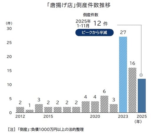 「唐揚げ店」の倒産、2025年は12件 ピークから半減