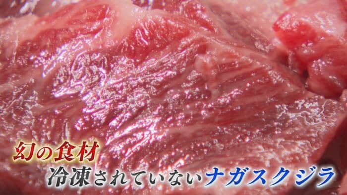 美しく光沢を放つ赤身にスッと入った上品な脂。“幻”といわれる食材、冷凍されていないナガスクジラだ。大半は冷凍されるため、生肉が供給されるのは漁期終盤に限られ、北海道・苫小牧港で水揚げされたものが空輸された。