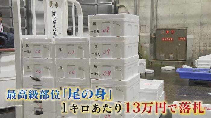 そこにいつもとは少し違う一角があった。活きのいい魚が並べられたその先に、多くの人が集まっている。一体、何が競りにかけられているのか。