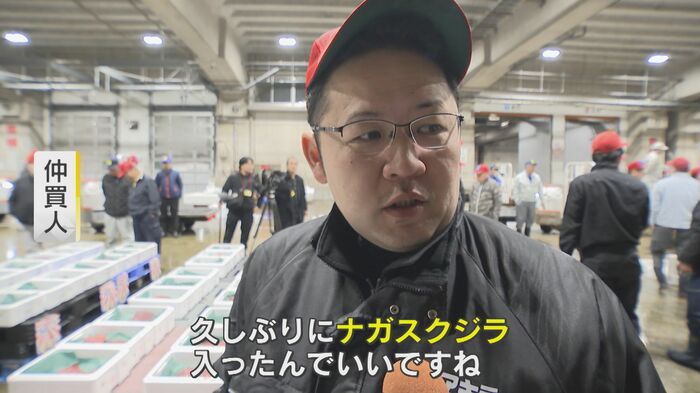 仲買人のひとりに話を聞くと「久しぶりにナガスクジラが入ったんで…。いいですね。“生”というのが、価値があると思う、ナガスクジラの」という。