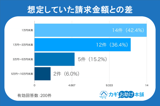 調査の結果、鍵業者に依頼した経験のある人の16.5%(約6人に1人)が、事前に聞いていた料金と最終的な請求金額に大きな差があったと回答。その背景には、料金相場に関する深刻な知識不足が潜んでいることが判明しました。