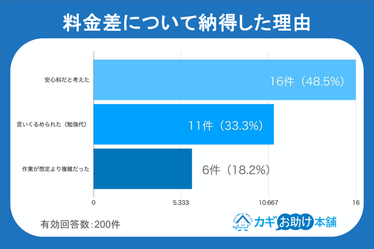 想定外の料金にもかかわらず高額請求を受け入れた理由を尋ねたところ、最も多かったのは「緊急事態を解決できたという安心料だと考えた」(48.5%)でした。