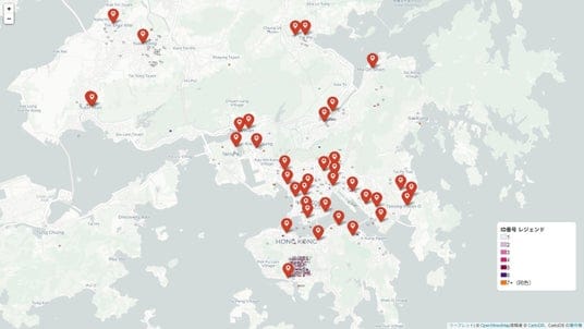 図1. 世界の位置情報データを活用した香港の人流分析レポート ※地図: OpenStreetMap