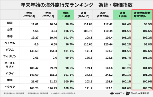 - 【為替×物価で見る海外】年末年始、コスパがいいのは韓国とベトナム!香港・イタリアは割高だが工夫次第でおトクに