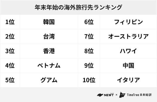 出典元:「TimeTree未来総合研究所」と旅行アプリ『NEWT(ニュート)』の「2025年~2026年・年末年始旅行」共同調査(プレスリリースリンク)