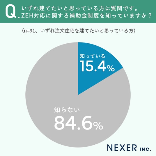 注文住宅を建てたい方のうち、84.6%がZEH対応に関する補助金を「知らない」と回答しました。