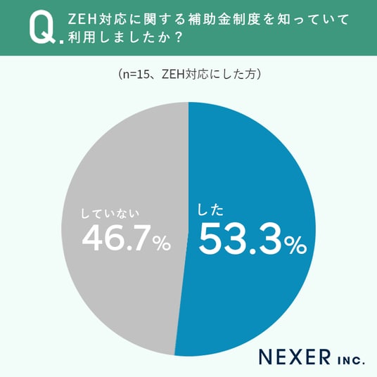 53.3%がZEH対応に関する補助金制度を理解したうえで利用したと回答しました。