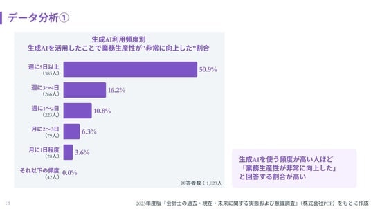 会計士1,091人の大規模調査で判明。AIを「ほぼ毎日使う」層の約5割が生産性の大幅な向上を実感。