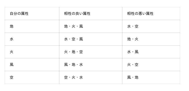 自分の属性を把握したら、次に属性同士の相性をチェックしてみましょう。