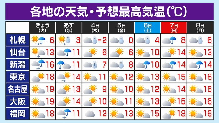 特に4日の朝は“風冷え”。風が吹きますので体感温度が下がります。5日は“底冷え”です。風が収まって、もしかすると霜が降りたりということがあるかもしれません。