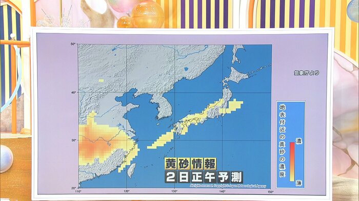 PM2.5を含んで、そういうものが遠く日本までやってきているということなので、きょう(2日)は車とかも気をつけた方がいいかもしれないです。明日でもいいので、車についた黄砂はしっかり洗い流すのがいいと思います。