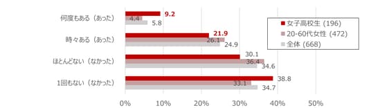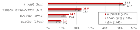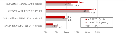 ■女子高校生の7割超が「やめたい」を経験、女性特有の悩みも一因