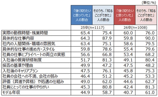- 「社内の人間関係・職場の雰囲気」を知ることができた割合は2025年卒に比べて増加し、約8割に(図表5)