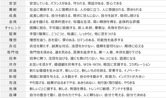 ⇒まず安定した環境を確保することが前提。その上で、貢献・成長し、思い切ってチャレンジし理想や競争を追い求めたいという気持ちがある。