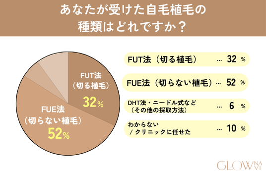 自毛植毛では、「FUE法(切開を伴わない植毛)」を選んだ人が全体の半数を超えました。
