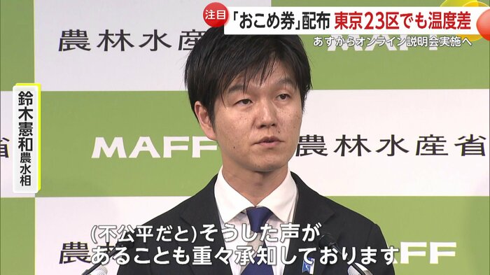 鈴木農水大臣は2日、“おこめ券反対論”が出ていることについて、「各自治体において、できる限り負担感が少なく、速やかな実施が図られる方法を選択して進めていただくことを期待している」と述べた。