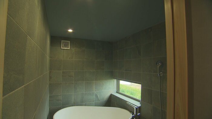風呂は父親と子供が一緒に入れるような大きさに設計されており、窓からは立山町の雄大な風景を眺めることができる。入浴しながら地域の自然美を感じられる空間となっている。