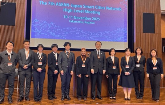 国立大学法人岡山大学(本部:岡山市北区、学長:那須保友)グローバル・ディスカバリー・プログラム(GDP)の学生5人が、2025年11月10日に香川県高松市で開催された「第7回日ASEANスマートシティ・ネットワーク ハイレベル会合」(主催:国土交通省)に参加しました。会合には、ASEAN諸国、ASEAN事務局および日本から政府関係者、都市開発の専門家、民間企業などが集い、インクルーシビティの観点を踏まえたスマートシティ実現に向けた取り組みについて議論が行われました。