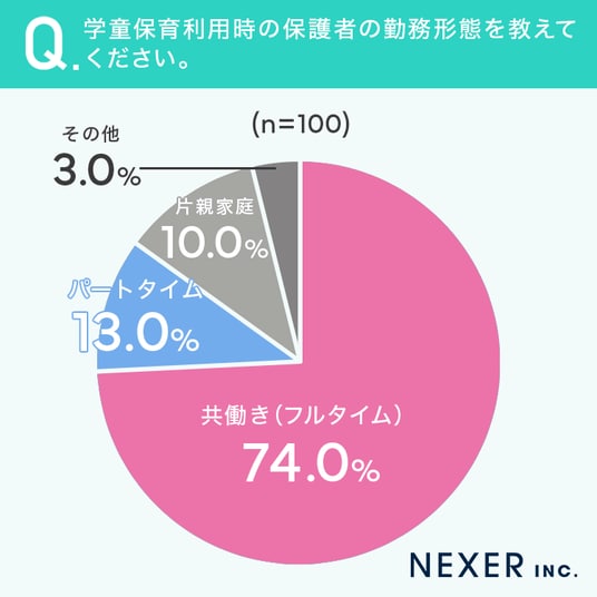 まずは、学童保育利用時の保護者の勤務形態を聞いてみました。