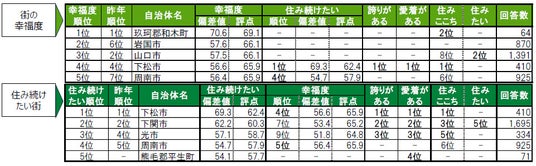 街の幸福度1位は3年連続で玖珂郡和木町。2位岩国市、3位山口市。