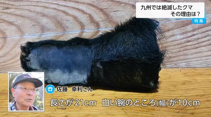 西田教授によると、日本のツキノワグマは、琵琶湖周辺を境に「東日本集団」「西日本集団」「四国・紀伊集団」に分かれる。このクマの手を西田教授がDNA解析した結果、西日本集団の中でも、九州独自のタイプであることが判明した。