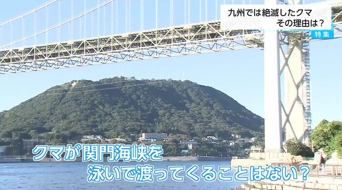 西田教授は、山口県と福岡県北九州市を隔てる関門海峡をクマが泳いで渡る可能性について「クマに泳ぐ力がないわけではないが、関門海峡は流れが速く、それに逆らうほどの遊泳力はない可能性がある」と指摘。さらに、「過去のツキノワグマのDNA解析では、九州の集団と西日本の集団が交わった証拠がなく、歴史的にも渡ってきていないとみられる」と説明した。