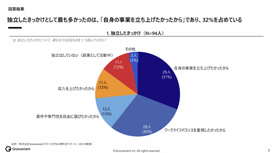 その結果、独立の動機、活動実態、そして市場からの評価が、従来の「高報酬」を主軸としたイメージから「自己実現」を重視する自律的なキャリアへとシフトしていることが明らかになりました。